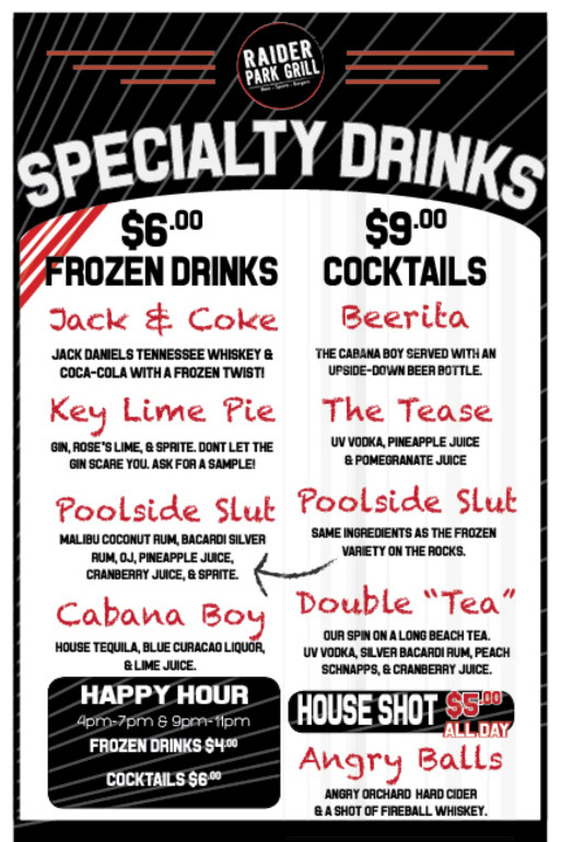 Similar to our Chalkboard Specials, we'll be whipping up new cocktails, inventing shots, and adding seasonal drinks to our repertoire! Be sure to follow us on Facebook to stay updated on all the new specials we have to offer!